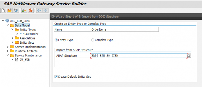 This option allows you to create an entity using an ABAP structure from the Data Dictionary.