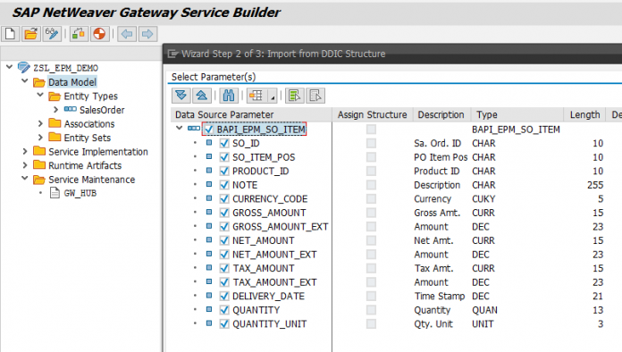 This step maps backend structure fields into the OData model.