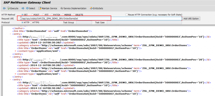 Enter the service URL with the item Entity Set name.