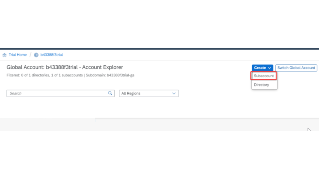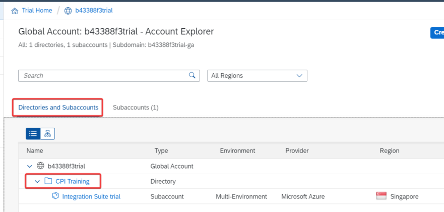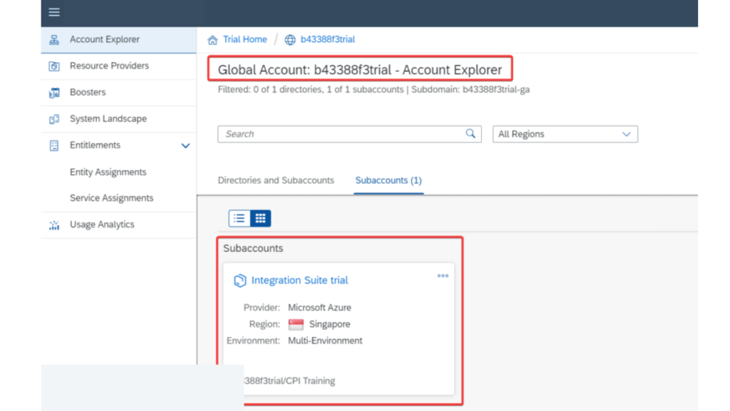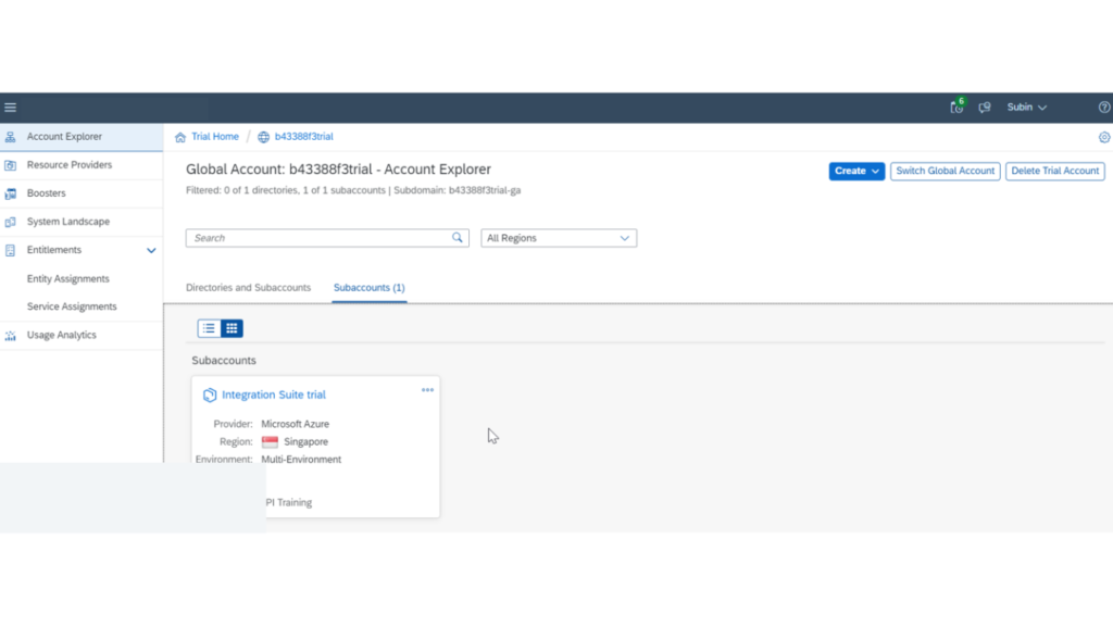 In above image, you can see that the subaccount is created with provider Microsoft Azure in Singapore region.
