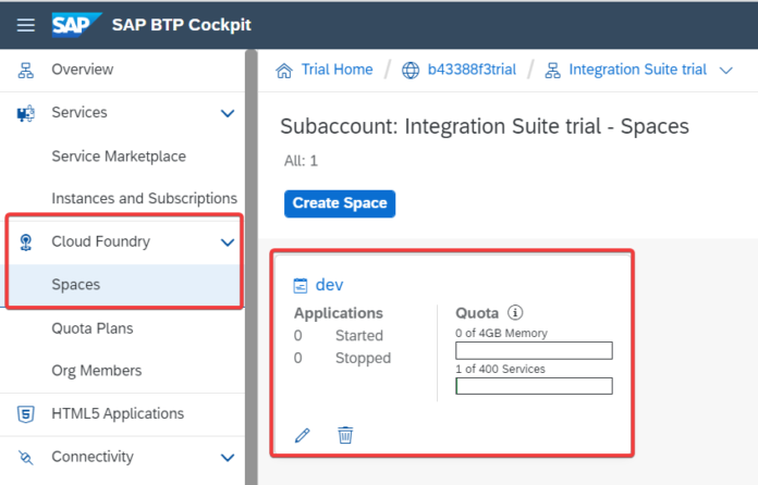 In the event that you go into the subaccount and under the Haze foundry choice, click on Spaces, where you can perceive how much memory you have consumed and all out number of administrations you have bought into. For preliminary record, the memory size is 4GB and administrations that can be bought in greatest is 400.